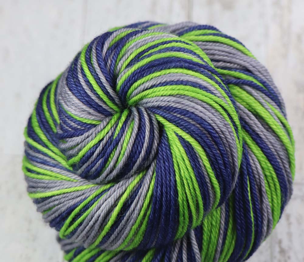 BLUE GREEN GRAY: SW Merino-Nylon DK - Hand dyed Self-Striping yarn - Seahawks