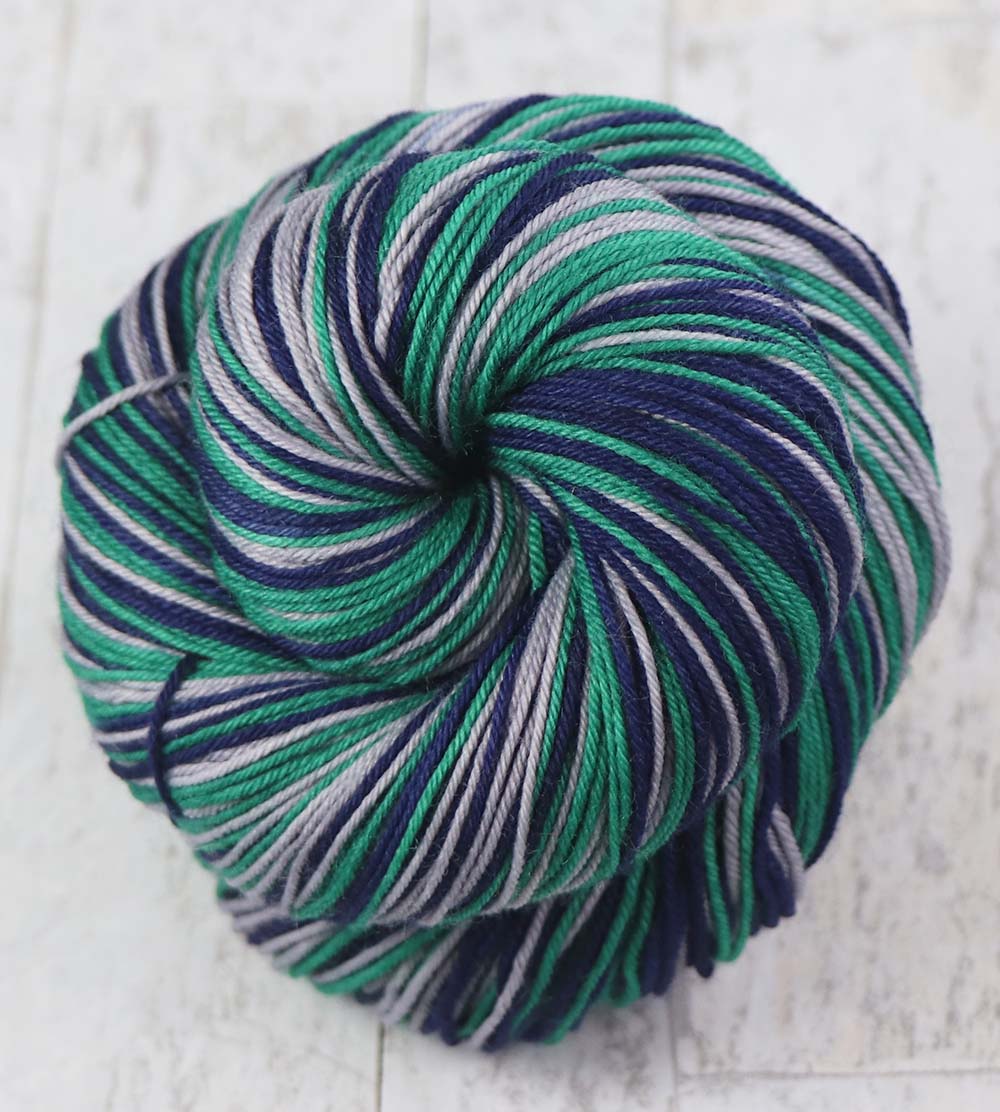 BLUE TEAL GRAY: SW Merino/Nylon - Hand dyed Self-Striping sock yarn - Seattle