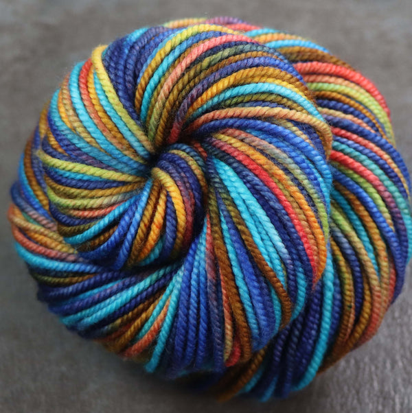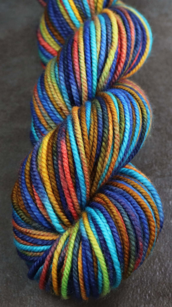 BEACH DAYColors: Blues, Browns, Yellows, Reds, Orange100% Superwash 20.5 Micron Merino / 3ply bulky weight yarn 136 yards / 115 gramshandwash in cool water, dry flat In stock: 1 ~~ This was inspired by a day at the beach in South Maui! This...