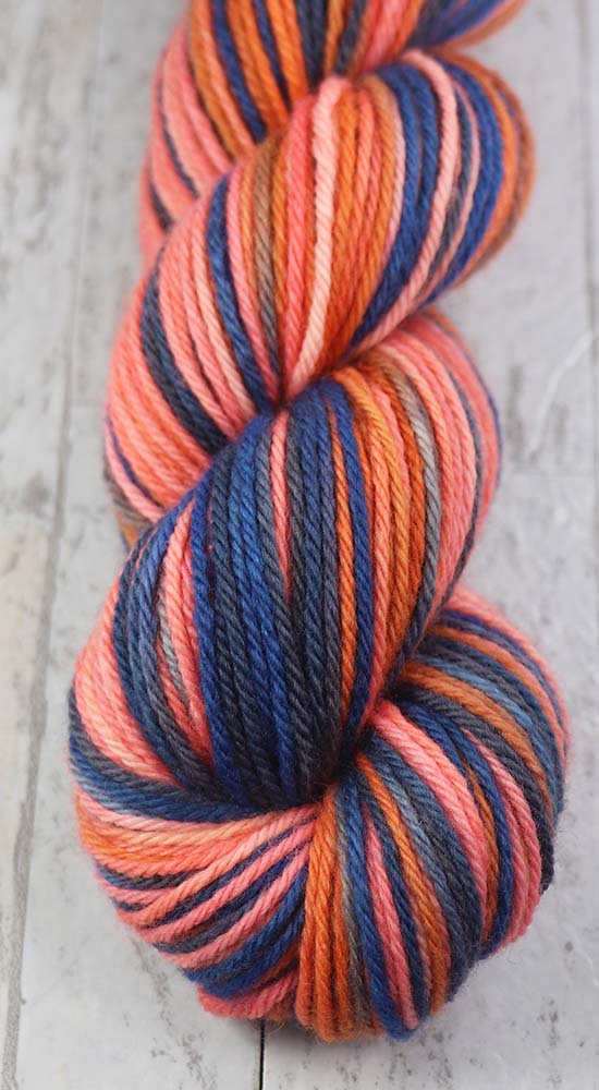 COASTAL CLOUDSColors: Black/Gray, Blues, Pinks, Sunset Orange 100% Organic Non-Superwash 20.5m Merino worsted weight yarn218 yards / 100 gramshandwash in cool water, lay flat to dry In stock: 1 ~~ This colorway was inspired by the amazing fall sunsets we get here on...