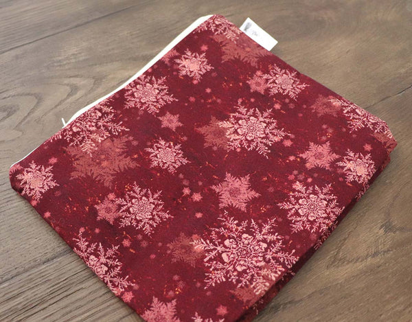 SNOWFLAKES (Red) Project BagSize: approximately 12" Length x 9.25" High, 2" Wide baseMaterials: Cotton fabric, InterfacingNote: This is a clutch style, handle-less bag In stock: 1__ After making face coverings during the spring/summer months, I still have some beautiful fabric to make...