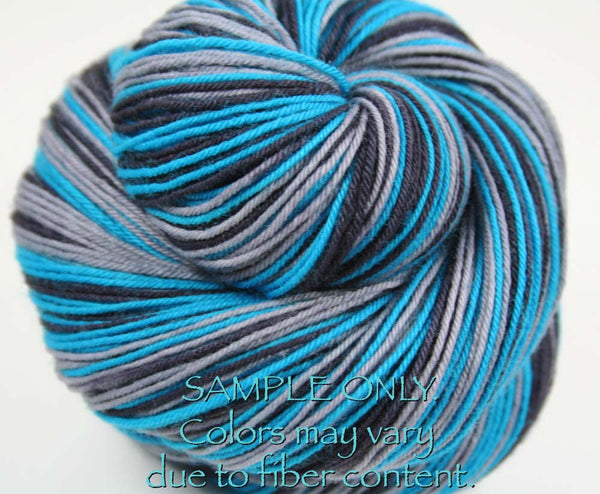 This is for a DYED TO ORDER listing of "BLUE - BLACK - GRAY" self-striping colorway. Stripes will be between 1/2 - 3/4" depending on gauge for knitting socks. *Please use the drop-down menu to choose the YARN BASE.Colors: Blue,...