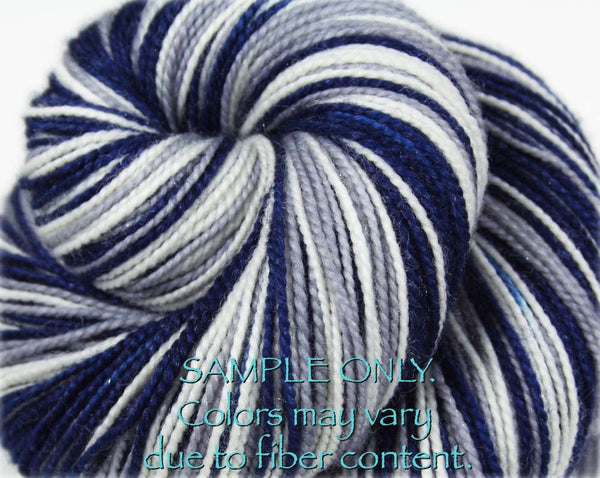 Dyed-To-Order: BLUE-GRAY-WHITE - Hand dyed Sports Self Striping Sock Yarn - DALLAS, CONNECTICUT