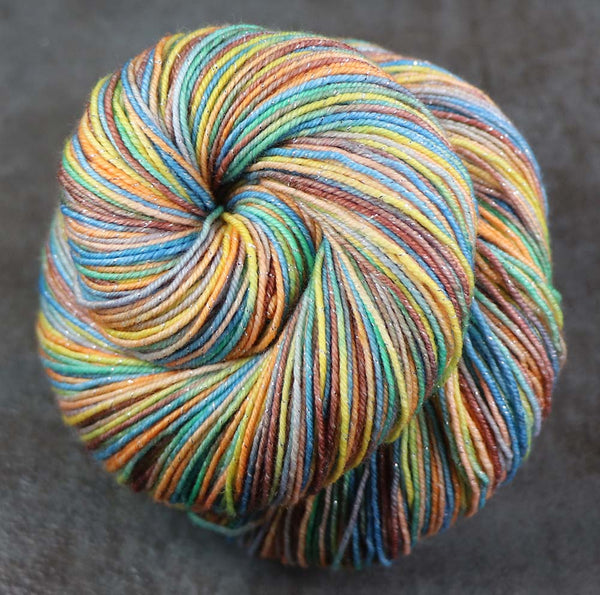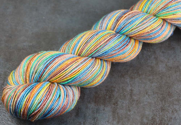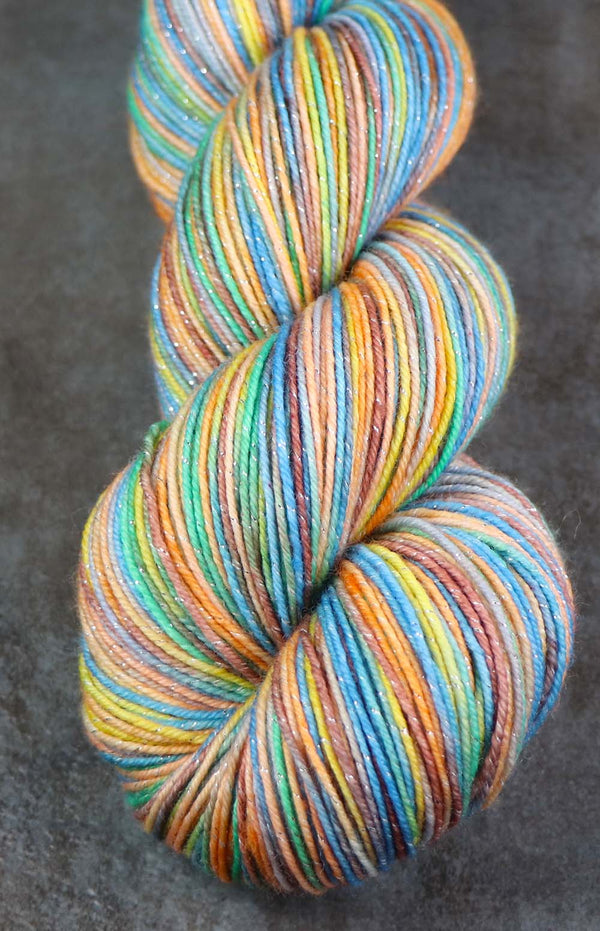 LAST SUNSET AT TURTLE BAY 2Colors: Blues, Greens, Peach/Pink, Yellow92% Superwash Merino wool, 8% Lurex (metallic sparkle) sock yarn: "LANIKAI" base400 yards / 100 gramshandwash in cool water, lay flat to dry In stock: 1 ___ Sunsets are always magical on...