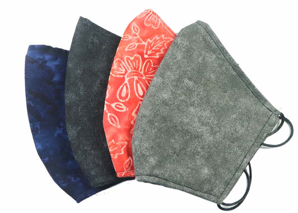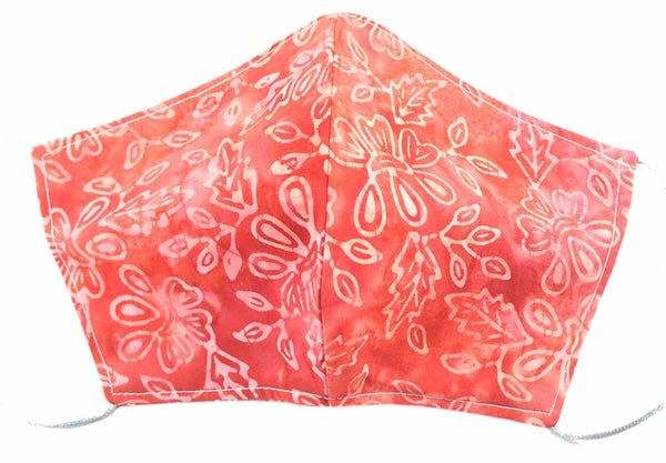 MASK: Cherry Geranium #1 - Large Size: Large - Approximately 8.5 wide x 6 high (in inches @ widest/highest points) Materials: Cotton, Interfacing, Nylon cord In stock: 1_______ These masks are made with interfacing between the outer fabric and lining. The nylon cord can be...