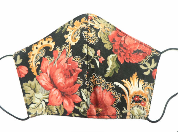MASK: Lady M #2 - Large Size: Large - Approximately 8.5 wide x 6 high (in inches @ widest/highest points) Materials: Cotton, Interfacing, Nylon cord In stock: 1_______ These masks are made with interfacing between the outer fabric and lining. The nylon cord can...
