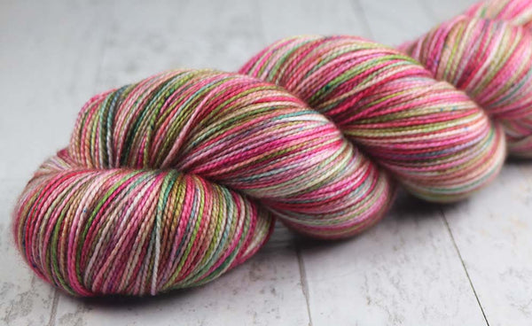 PRETTY IN PINK AT PAIAColor: Pinks/Reds, Greens, Beige80% SW Merino, 20% Silk: "KIHEI" base600 yards / 150 grams | 2-ply sock weight yarnhandwash in cool water, lay flat to dry In stock: 1 ~~ The inspirational photo for this colorway was taken at...