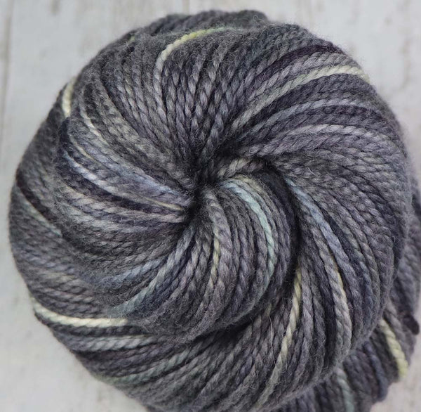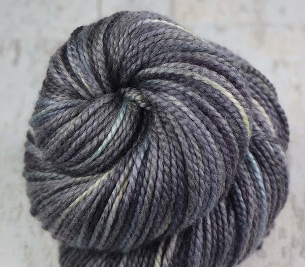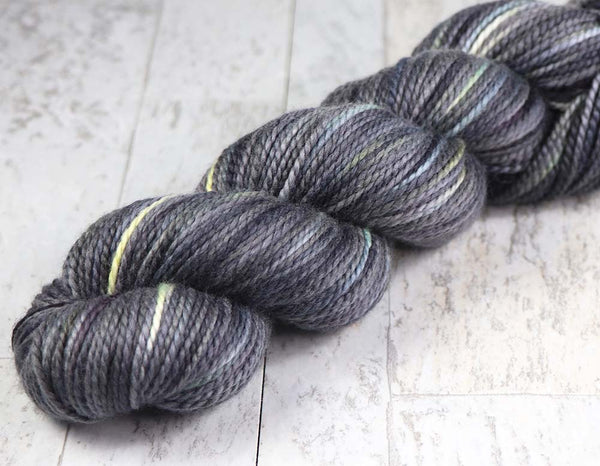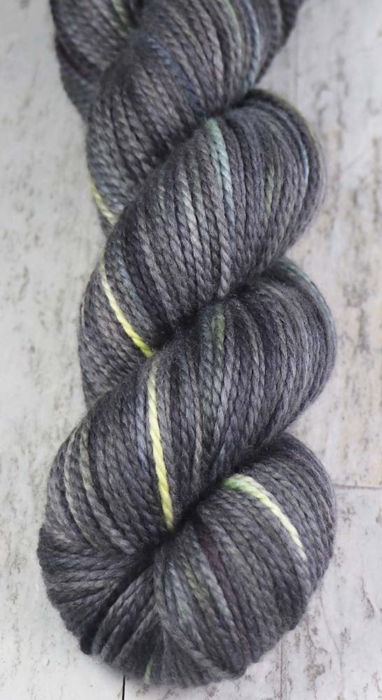 STARGAZING AT CHARLIE DOMEColor: Blacks, Grays, Light Yellow-Green, hints of blues and natural85% 19.5 micron merino wool, 15% mulberry silk215 yards / 100 grams / 2-ply worsted weight yarnhandwash In stock: 1 ~~ This inspirational photo was taken during a winter trip to Fairbanks, Alaska...