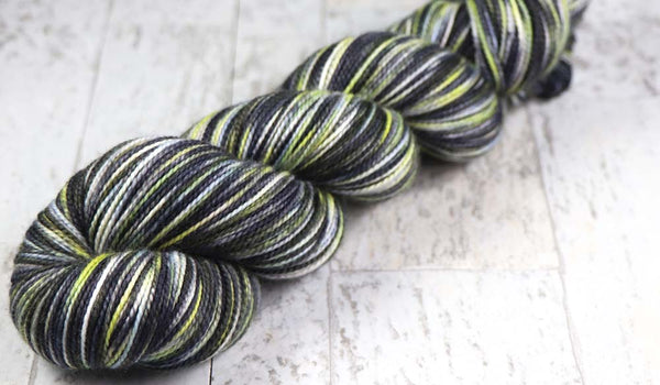 STARGAZING AT CHARLIE DOMEColor: Blacks, Grays, Light Yellow-Green, hints of blues and natural80% Superwash Merino wool/20% Nylon: "KAUAI" base400 yards / 100 grams / 2-ply sock yarnhandwash in COOL water, lay flat to dry In stock: 1 ~~ This inspirational photo...