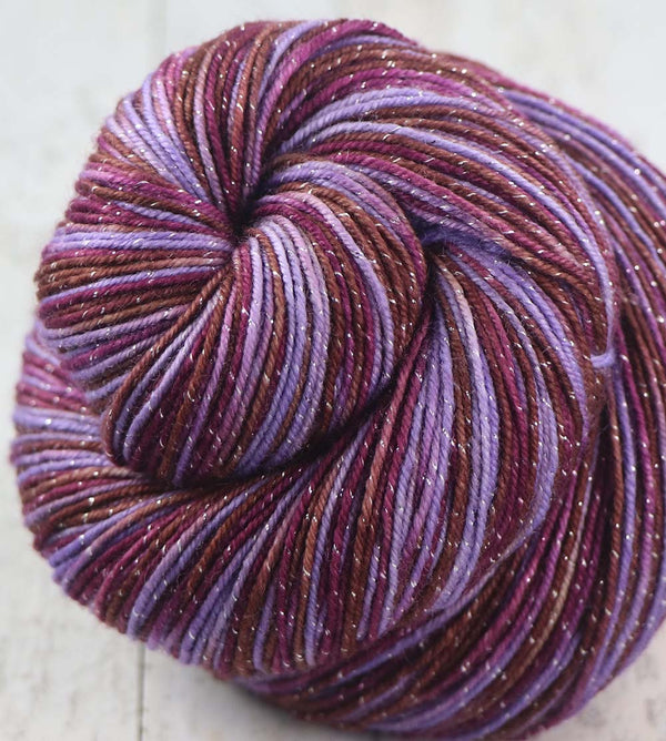 WINE TASTINGColor: Purples, Reds, Browns92% Superwash Merino wool, 8% Lurex (metallic sparkle) sock yarn: "LANIKAI" base400 yards / 100 gramshandwash in cool water, lay flat to dry In stock: 1 ___ I've wanted to create this colorway for years now and...
